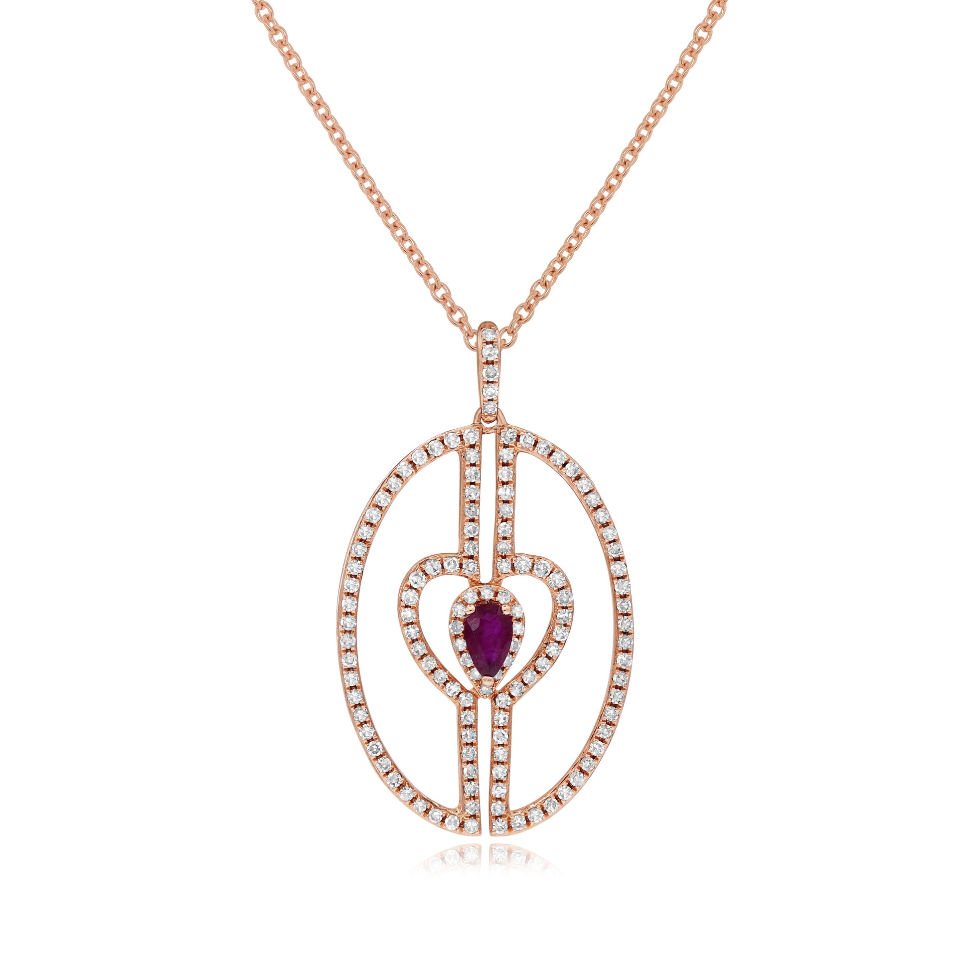 0.24 ct. Ruby & 0.48 ct. Diamond 14K Rose Gold Connected Heart Pendant