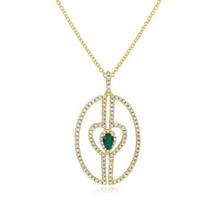 0.2 ct. Emerald & 0.47 ct. Diamond 14K Yellow Gold Connected Heart Pendant