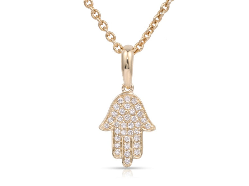 0.12 ct. Diamond 14K Yellow Gold Micro Pave Hamsa Charm Pendant