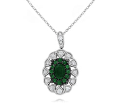 0.76 ct. Emerald & 0.26 ct. Diamond 14K White Gold Halo Pendant