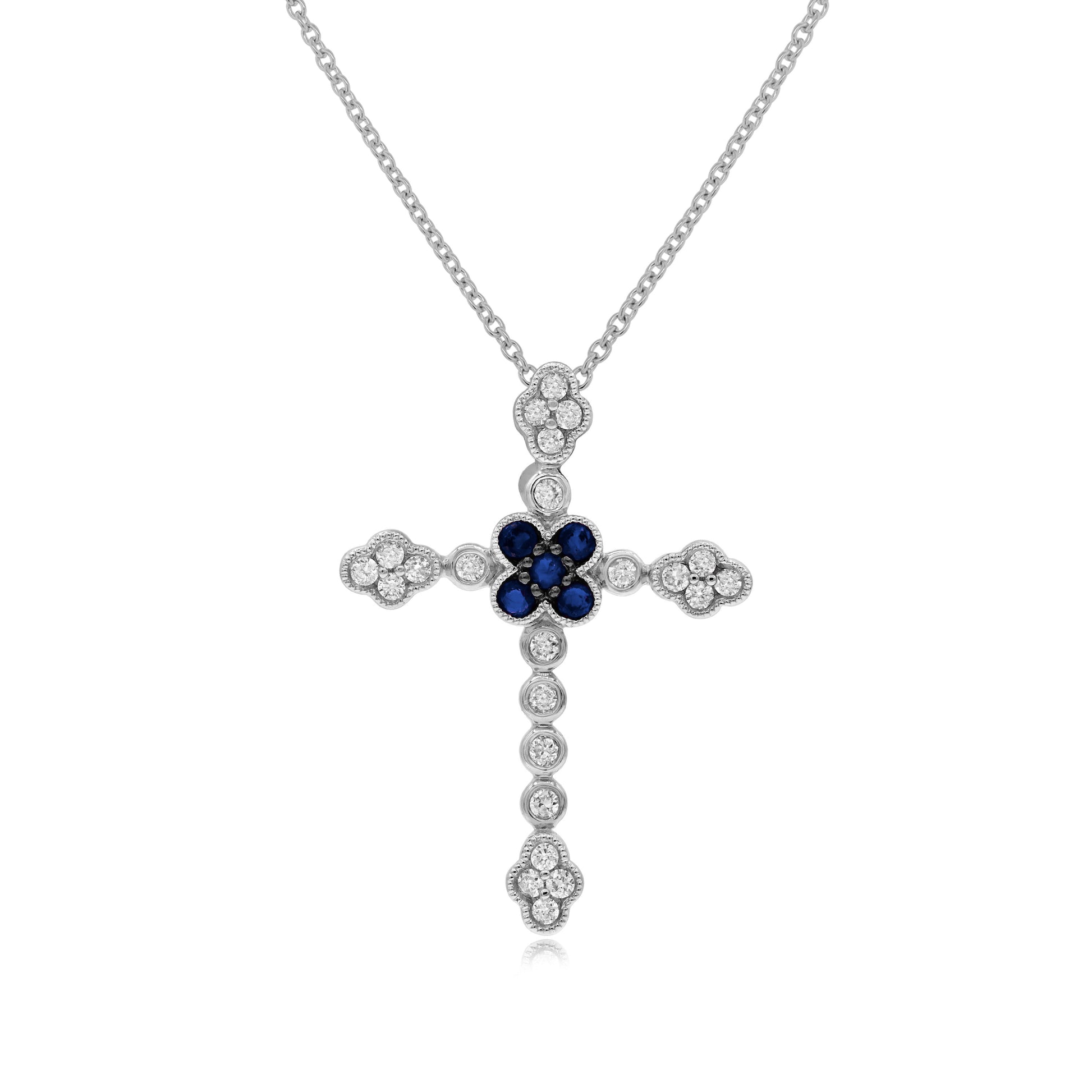 0.2 ct. Sapphire & 0.25 ct. Diamond 14K White Gold Cross Pendant