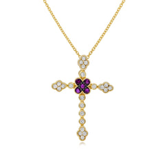0.18 ct. Ruby & 0.25 ct. Diamond 14K Yellow Gold Cross Pendant