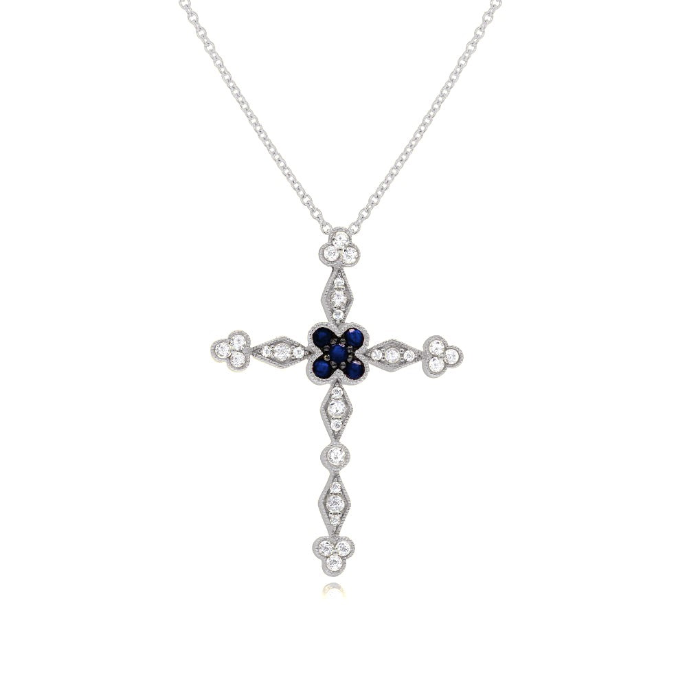 0.2 ct. Sapphire & 0.26 ct. Diamond 14K White Gold Cross Pendant
