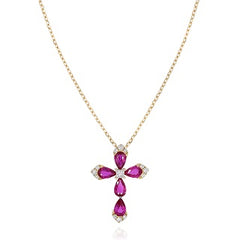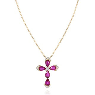 0.97 ct. Ruby & 0.14 ct. Diamond 14K Yellow Gold Cross Pendant