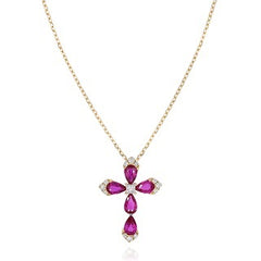 1.1 ct. Ruby & 0.17 ct. Diamond 14K Yellow Gold Cross Pendant