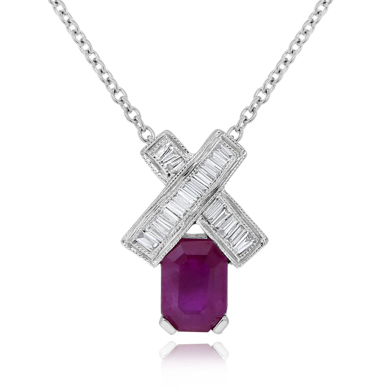 1.95 ct. Ruby & 0.2 ct. Diamond 18K White Gold Criss Cross Pendant