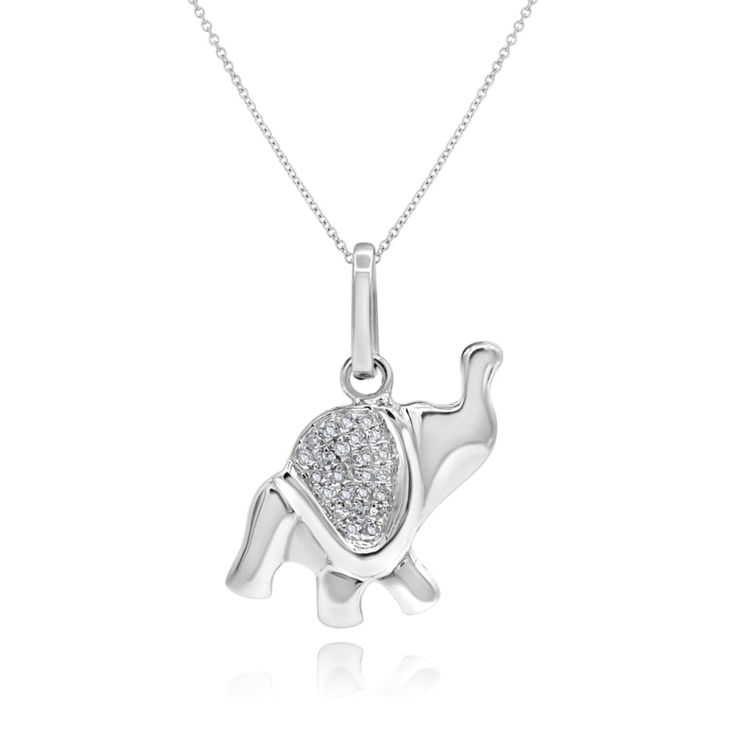 0.04 ct. Diamond 14K White Gold Elephant Pendant