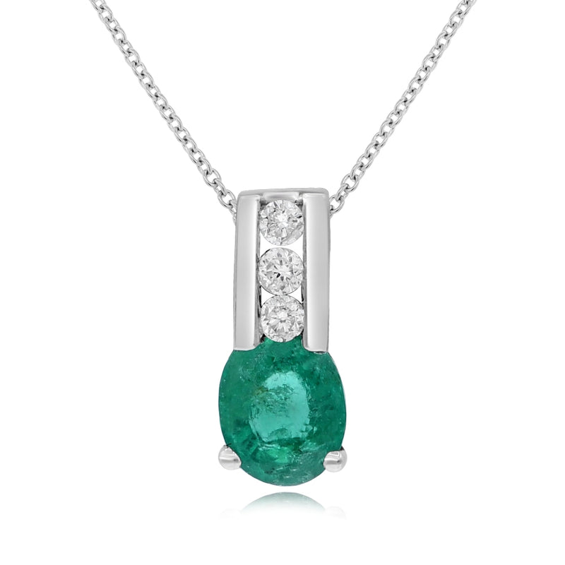0.38 ct. Emerald & 0.05 ct. Diamond 14K White Gold Pendant