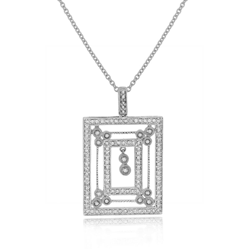 0.62 ct. Diamond 18K White Gold Art Deco Square Pendant