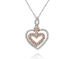 0.65 ct. Diamond 18K Two Tone Gold Double Heart Pendant