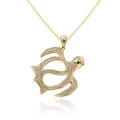 0.35 ct. Diamond 14K Yellow Gold Turtle Pendant With Chain 18"