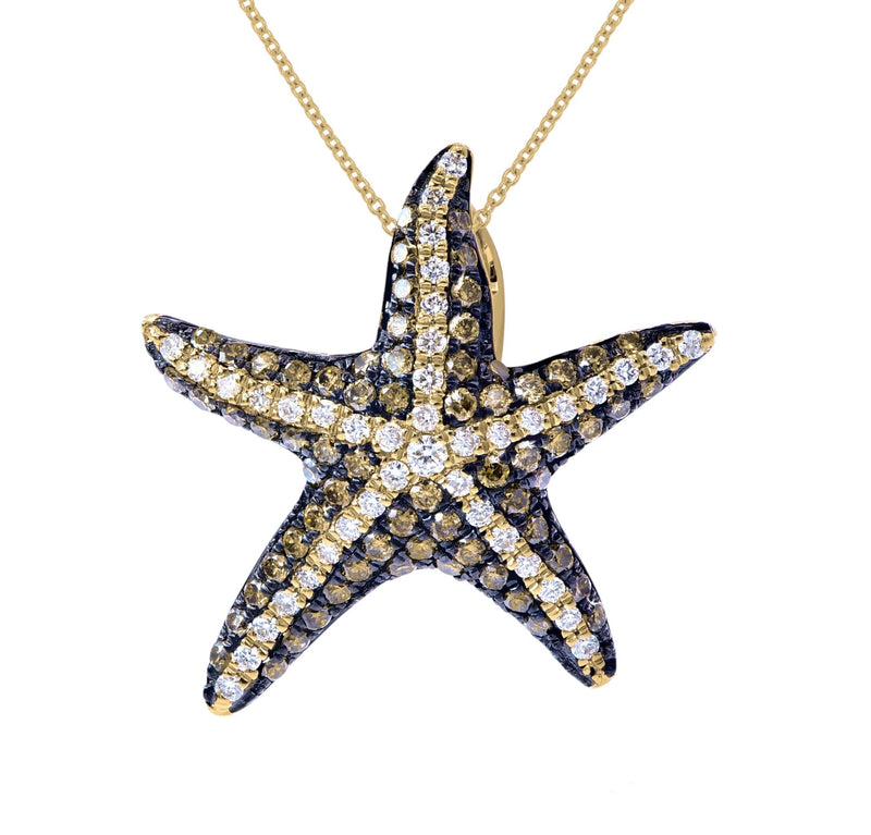 0.65 ct. Black & White Diamond 14K Yellow Gold Starfish Pendant