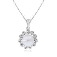 0.05 ct. Diamond & Pearl 14K White Gold Halo Screw Pendant
