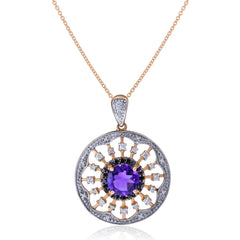 1.7 ct. Amethyst & 0.39 ct. Black & White Diamond 14K Rose Gold Medallion Pendant With Chain 18"