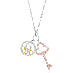 0.46 ct. Diamond 14K Three Tone Gold Mom & Key Charms Pendant