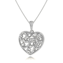 0.2 ct. Diamond 14K White Gold Filigree Heart Butterfly Pendant