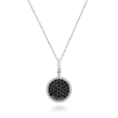 1.34 ct. Black & White Diamond 14K White Gold Halo Circle Pendant