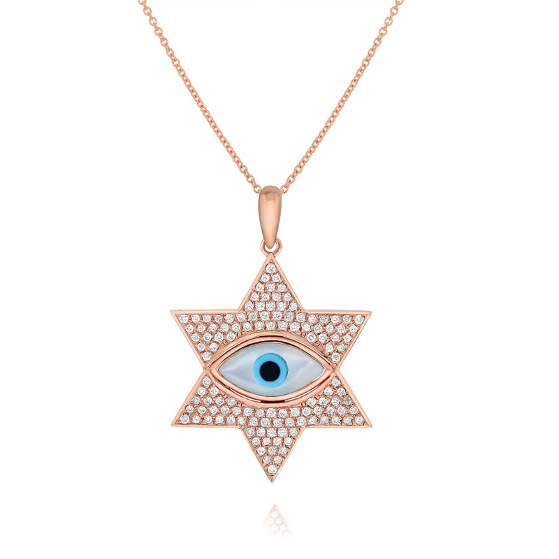 0.68 ct. Pearl & 0.35 ct. Diamond 14K Rose Gold Evil Eye Star Pendant