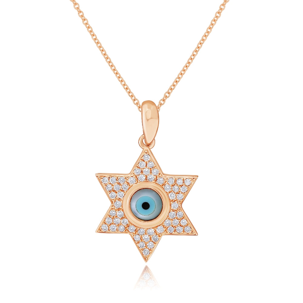 0.2 ct. Mother of Peral & 0.15 ct. Diamond 14K Rose Gold Pave Hamsa Evil Eye Star of David Pendant