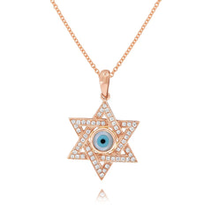 0.2 ct. Mother of Pearl & 0.16 ct. Diamond 14K Rose Gold Hamsa Evil Eye Star Pendant