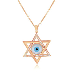 0.2 ct. Mother of Peral & 0.16 ct. Diamond 14K Rose Gold Star of David Evil Eye Pendant