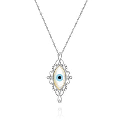 1.82 ct. Mother of Pearl & 0.11 ct. Diamond 14K White Gold Hamsa Evil Eye Pendant
