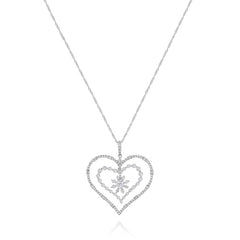 1.51 ct. Diamond 14K White Gold 3D Double Heart Snowflake Love Floating Pendant