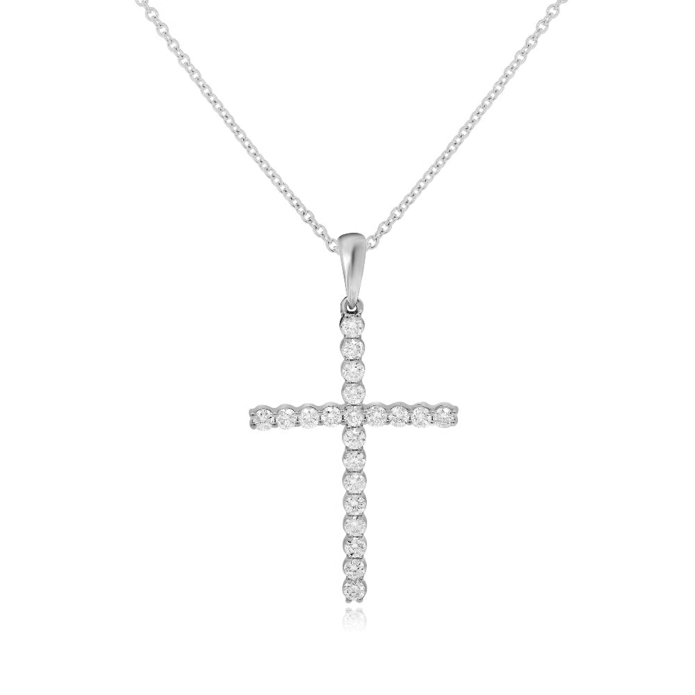 0.55 ct. Diamond 14K White Gold Cross Pendant