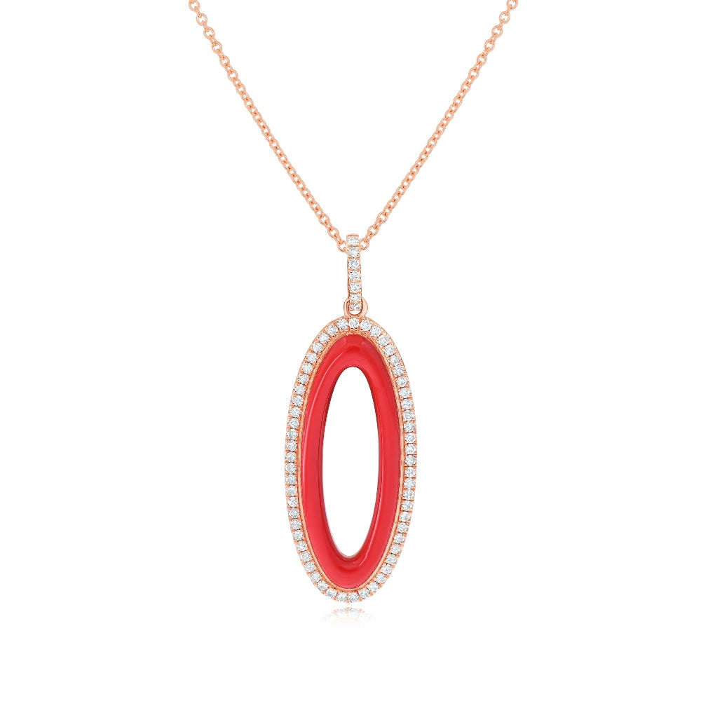 0.33 ct. Diamond 14K Rose Gold Red Enamel Oval Pendant