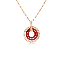 0.2 ct. Diamond 14K Rose Gold Red Enamel Trio Circle Pendant