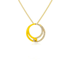 0.25 ct. Diamond 14K Yellow Gold Yellow Enamel Interlinked Circle Pendant