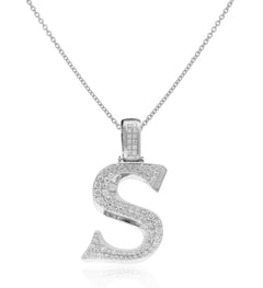 1.57 ct. Diamond 14K White Gold 'S' 3D Initial Pendant