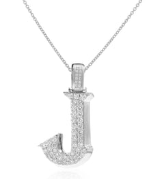 1.52 ct. Diamond 14K White Gold 'J' 3D Initial Pendant