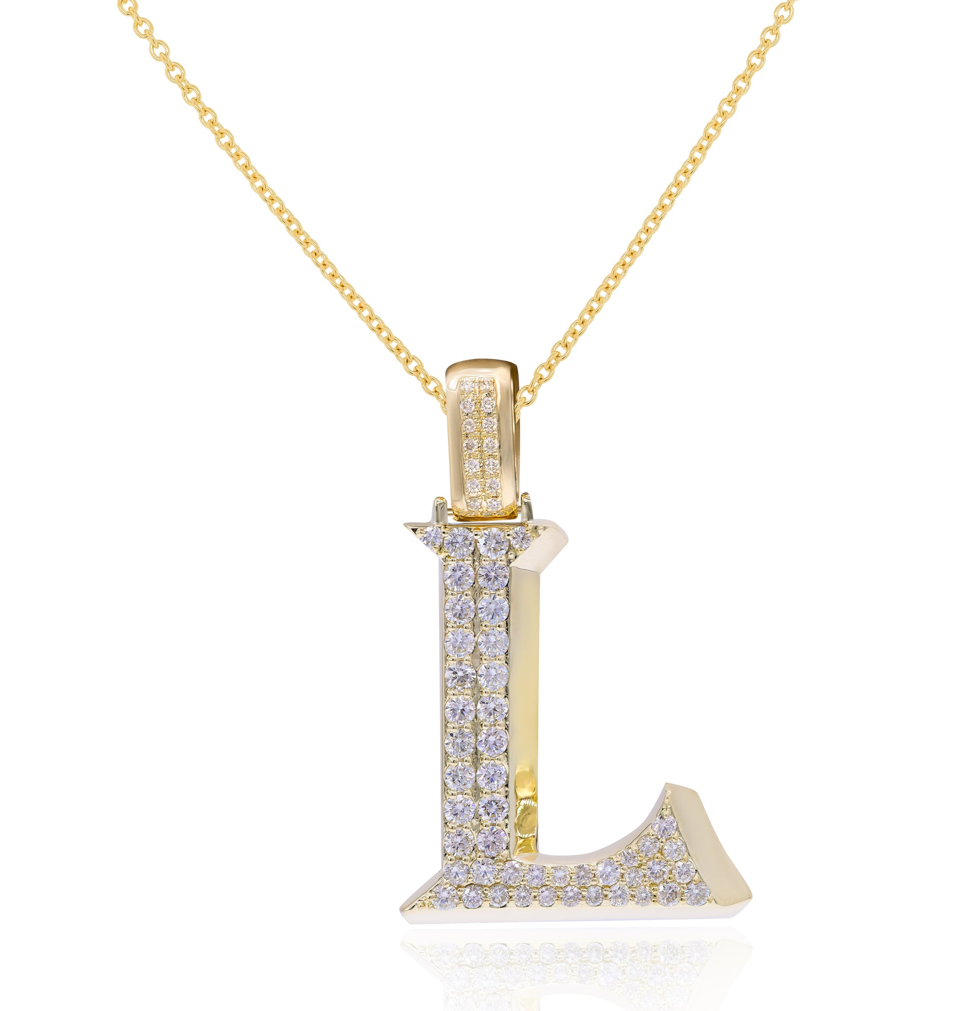 1.57 ct. Diamond 14K Yellow Gold 'L' 3D initial Pendant