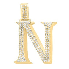 1.59 ct. Diamond 14K Yellow Gold 'N' 3D Initial Pendant