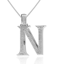 1.55 ct. Diamond 14K White Gold 'N' 3D Initial Pendant