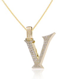 1.54 ct. Diamond 14K Yellow Gold 'V' 3D Initial Pendant