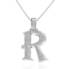0.78 ct. Diamond 14K White Gold 'R' 3D Initial Pendant