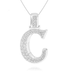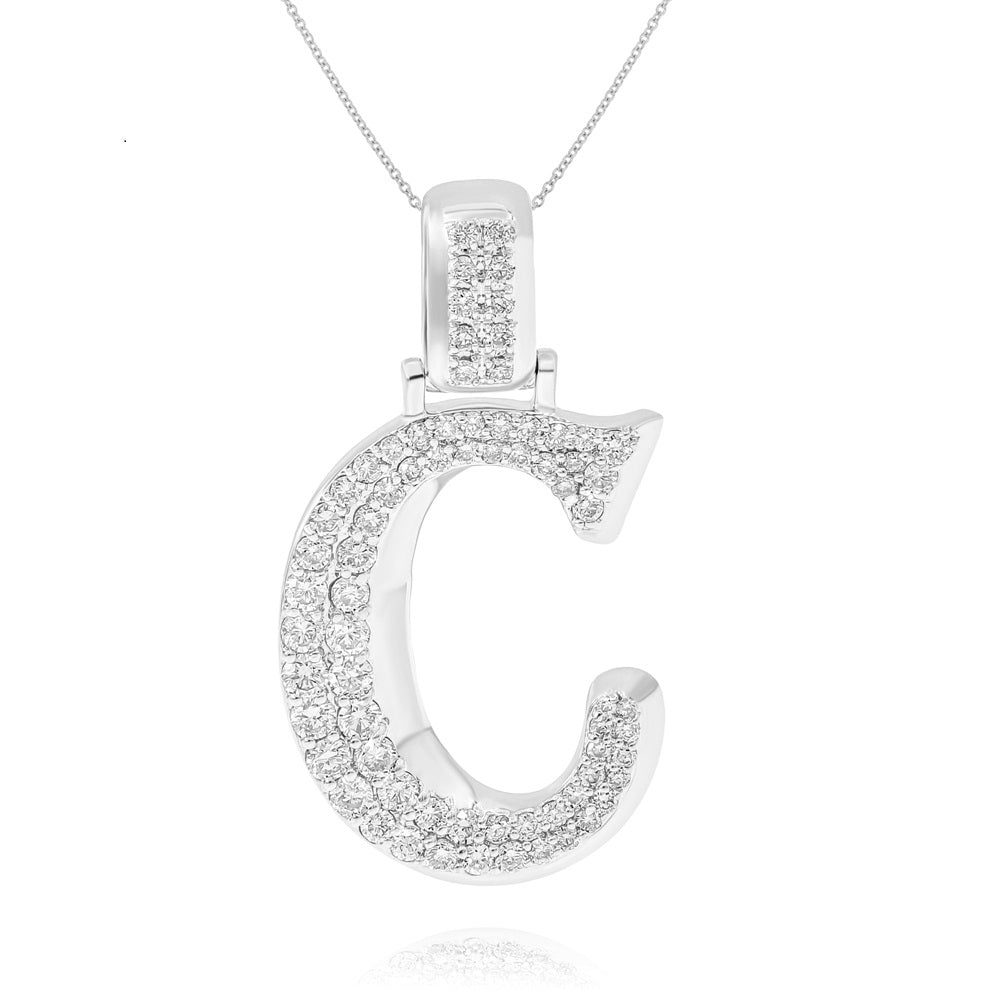 0.76 ct. Diamond 14K White Gold 'C' 3D Initial Pendant