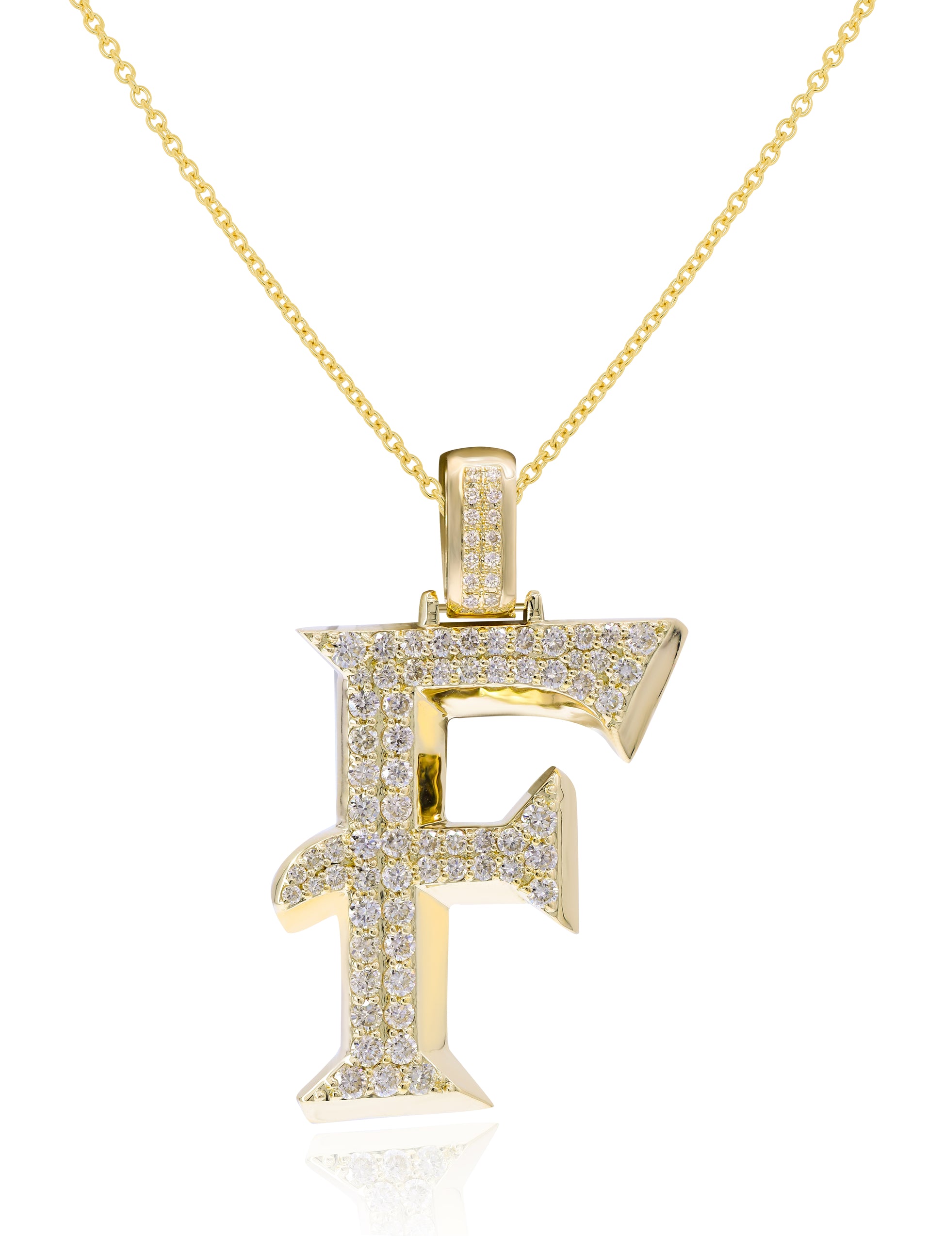 0.69 ct. Diamond 14K Yellow Gold 'F' 3D Initial Pendant