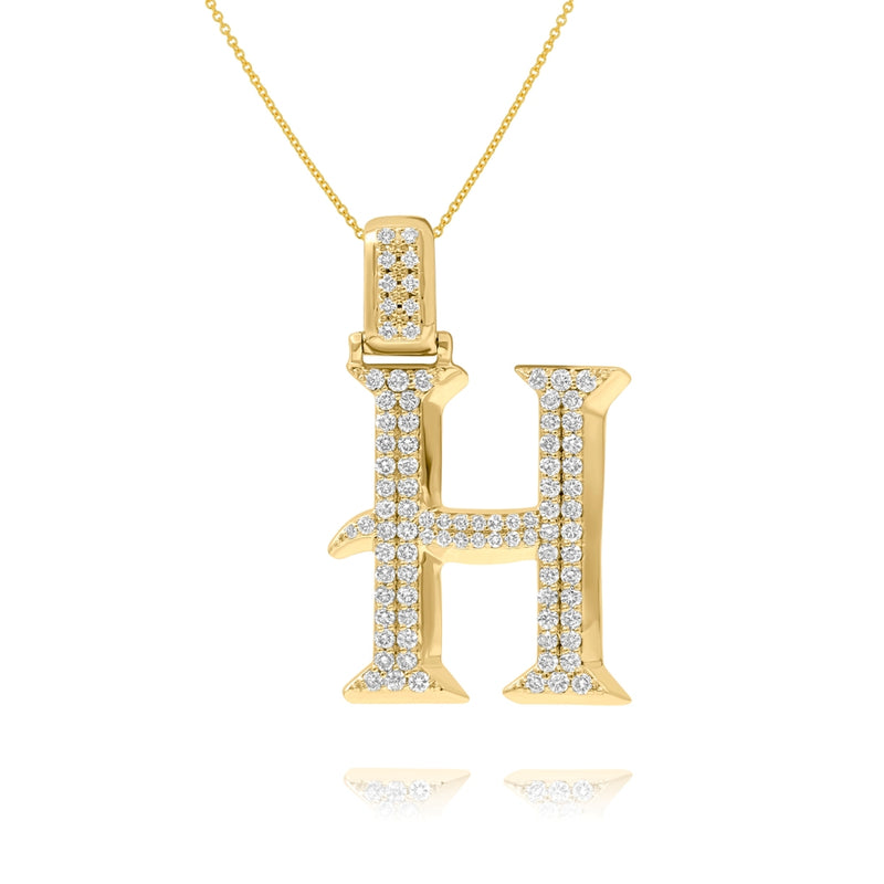 0.78 ct. Diamond 14K Yellow Gold 'H' 3D Initial Pendant