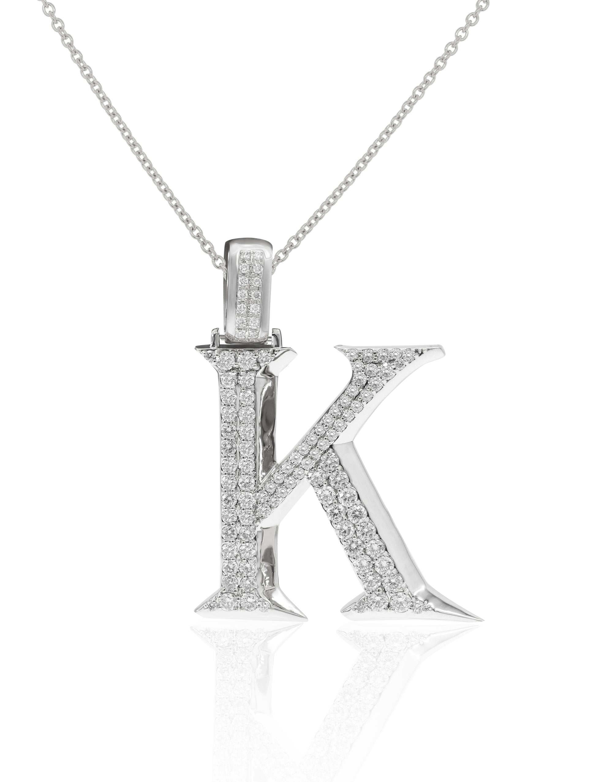 0.73 ct. Diamond 14K White Gold 'K' 3D Initial Pendant