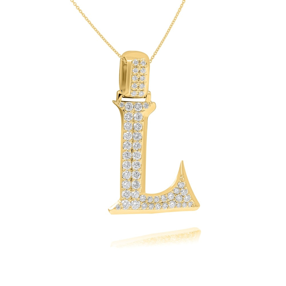 0.76 ct. Diamond 14K Yellow Gold 'L' 3D Initial Pendant