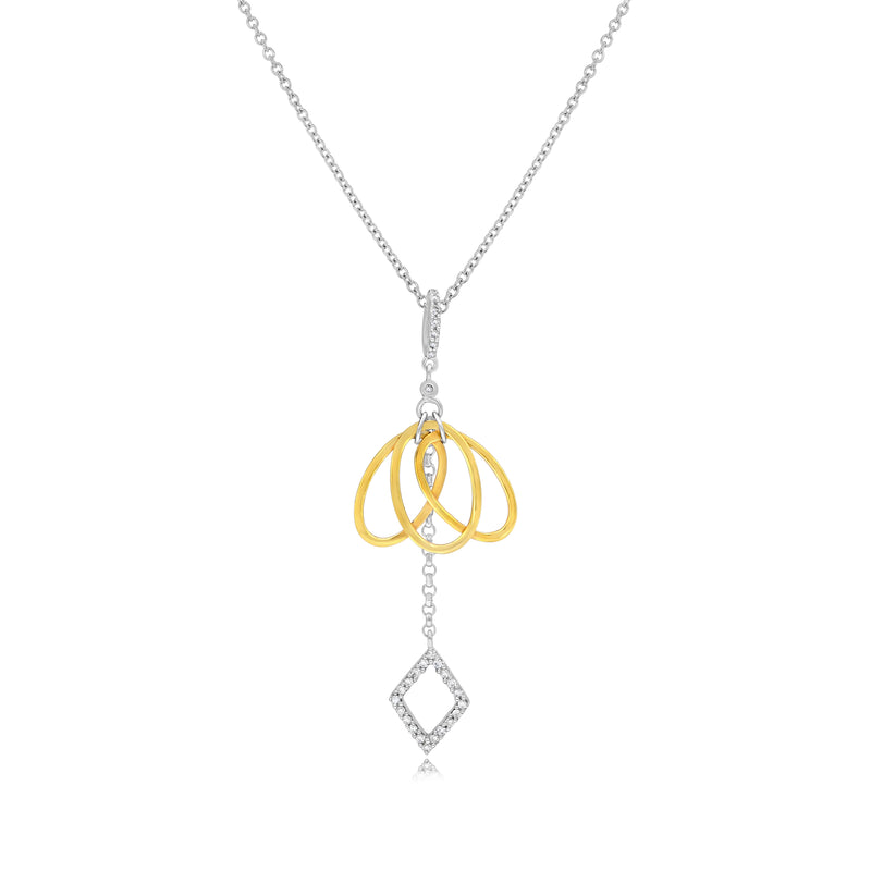 0.12 ct. Diamond 14K Two Tone Gold Abstract Umbrella Pendant