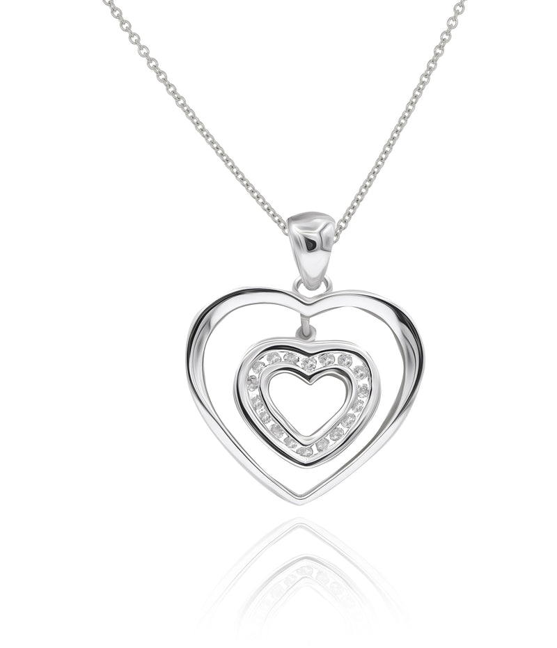 0.09 ct. Diamond 14K White Gold Double Heart Pendant