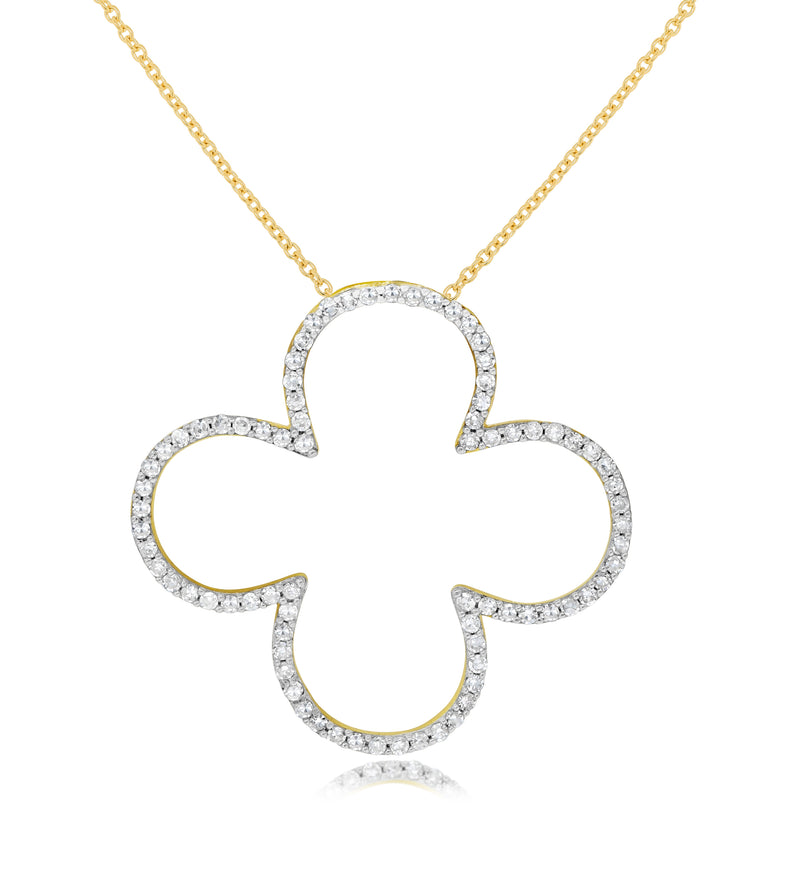 0.28 ct. Diamond 14K Yellow Gold Open Clover Flower Pendant Necklace