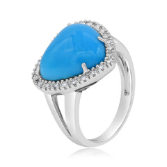 0.22 ct. Diamond & Turquoise 14K White Gold Split Shank Halo Ring