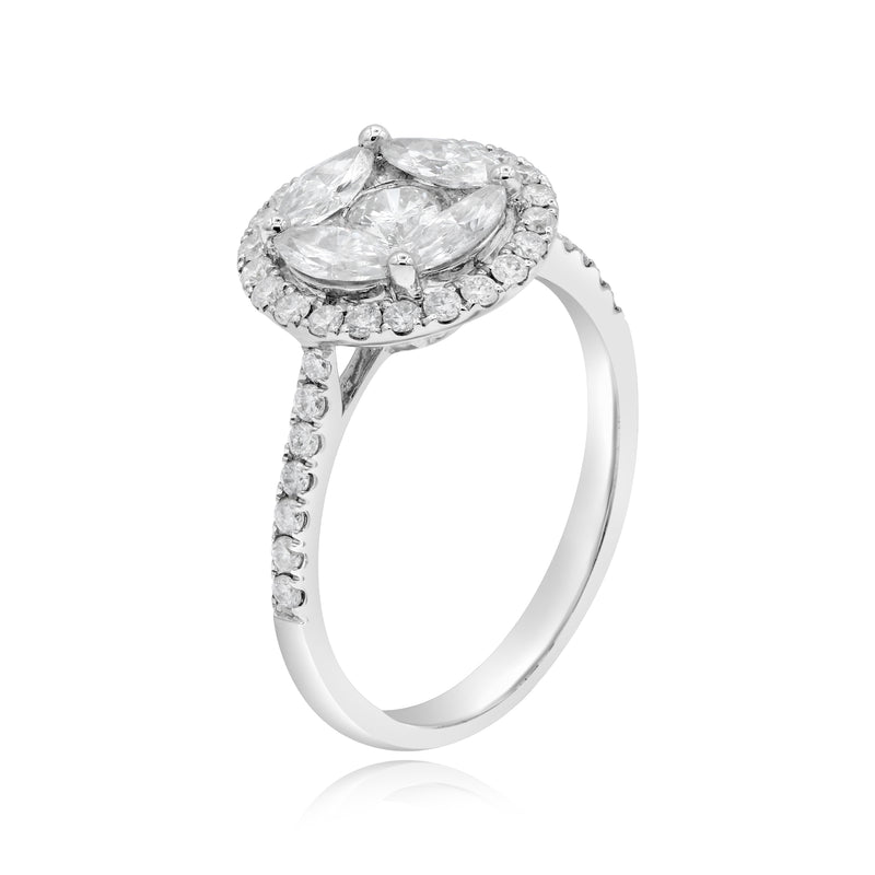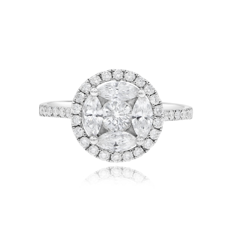 1.35 ct. Diamond 18K White Gold Halo Round Illusion Ring