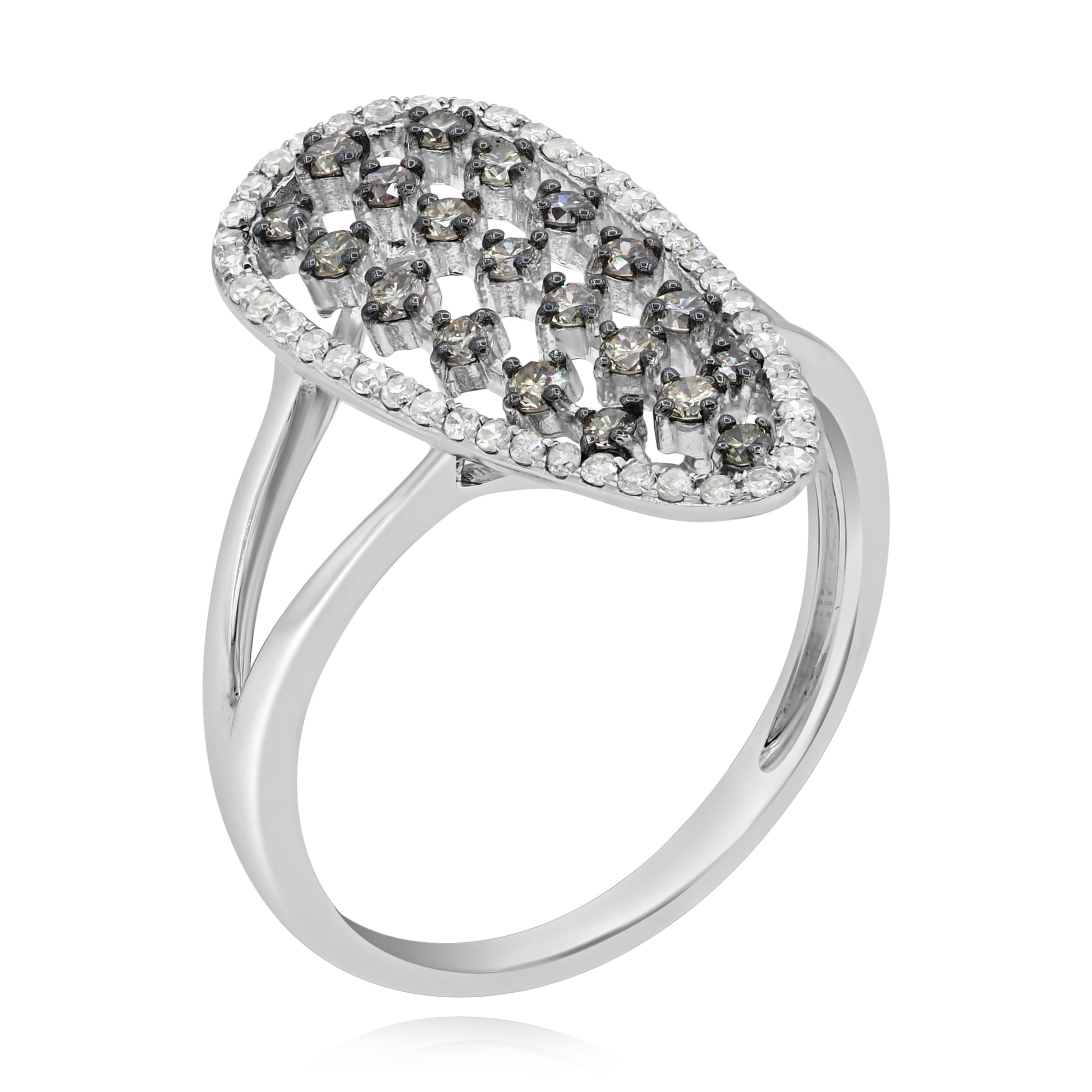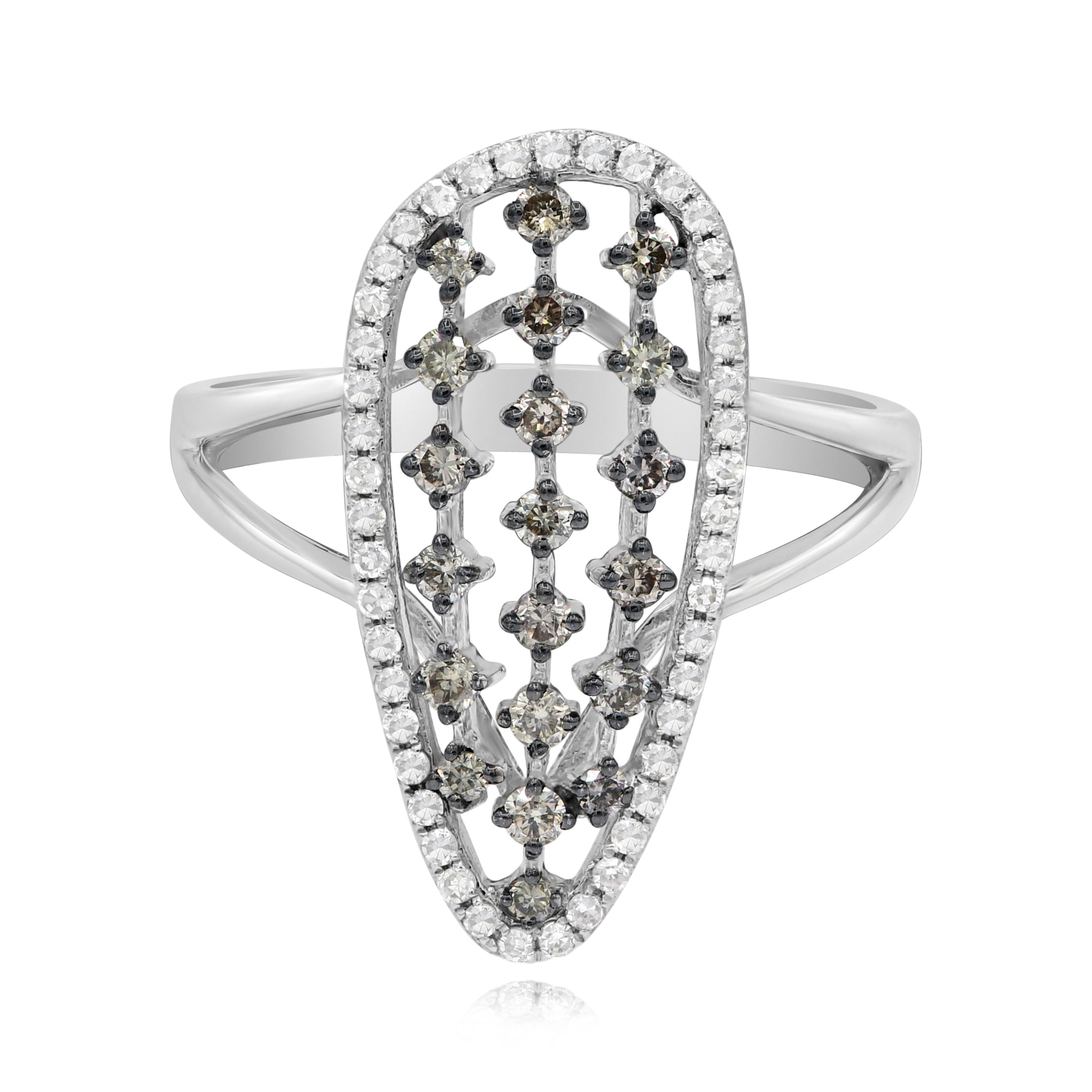 0.55 ct. Brown & White Diamond 14K White Gold Asymmetrical Open Pear Split Shank Ring