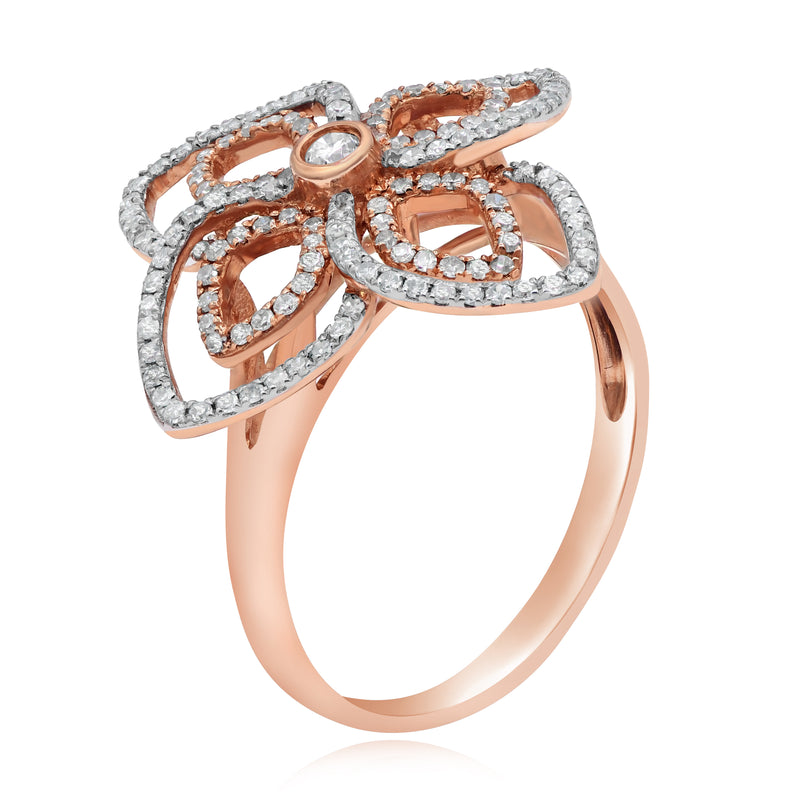 0.57 ct. Diamond 14K Two Tone Gold 3D Classic Flower Ring